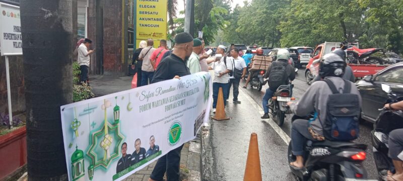 MEDAN-Forum Wartawan Kejaksaan Sumatera Utara (Forwaka Sumut) menggelar kegiatan berbagi takjil kepada para pengendara yang melintas di Jalan AH Nasution, tepatnya di depan Gedung Kejaksaan Tinggi Sumatera Utara, Jumat (13/3/2026).
