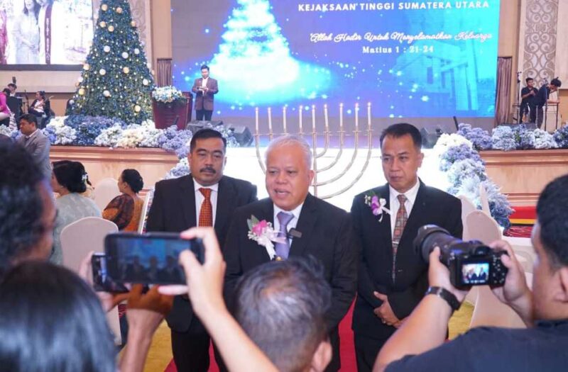 Medan – Keluarga besar Kejaksaan Tinggi Sumatera Utara merayakan natal dengan khidmad dan penuh sukacita yang berlangsung di Regale Convention Centre Jalan H.Adam Malik Medan, Jumat (19/12/2025).