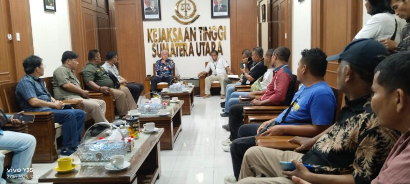 MEDAN-Kajatisu Harli Siregar menerima audensi Pengurus Forwaka Sumut yang dipimpin langsung Irfandi yang berlangsung di Lantai 2 Gedung Kejatisu, Kamis (02/10/25)