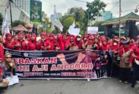 MEDAN-Ratusan massa dari Paguyuban Putra Jawa Kelahiran Sumatera (Pujakusuma) menggelar aksi unjuk rasa di Pengadilan Tipikor Medan dan Kejaksaan Tinggi Sumatera Utara, Senin (20/4/2026). …